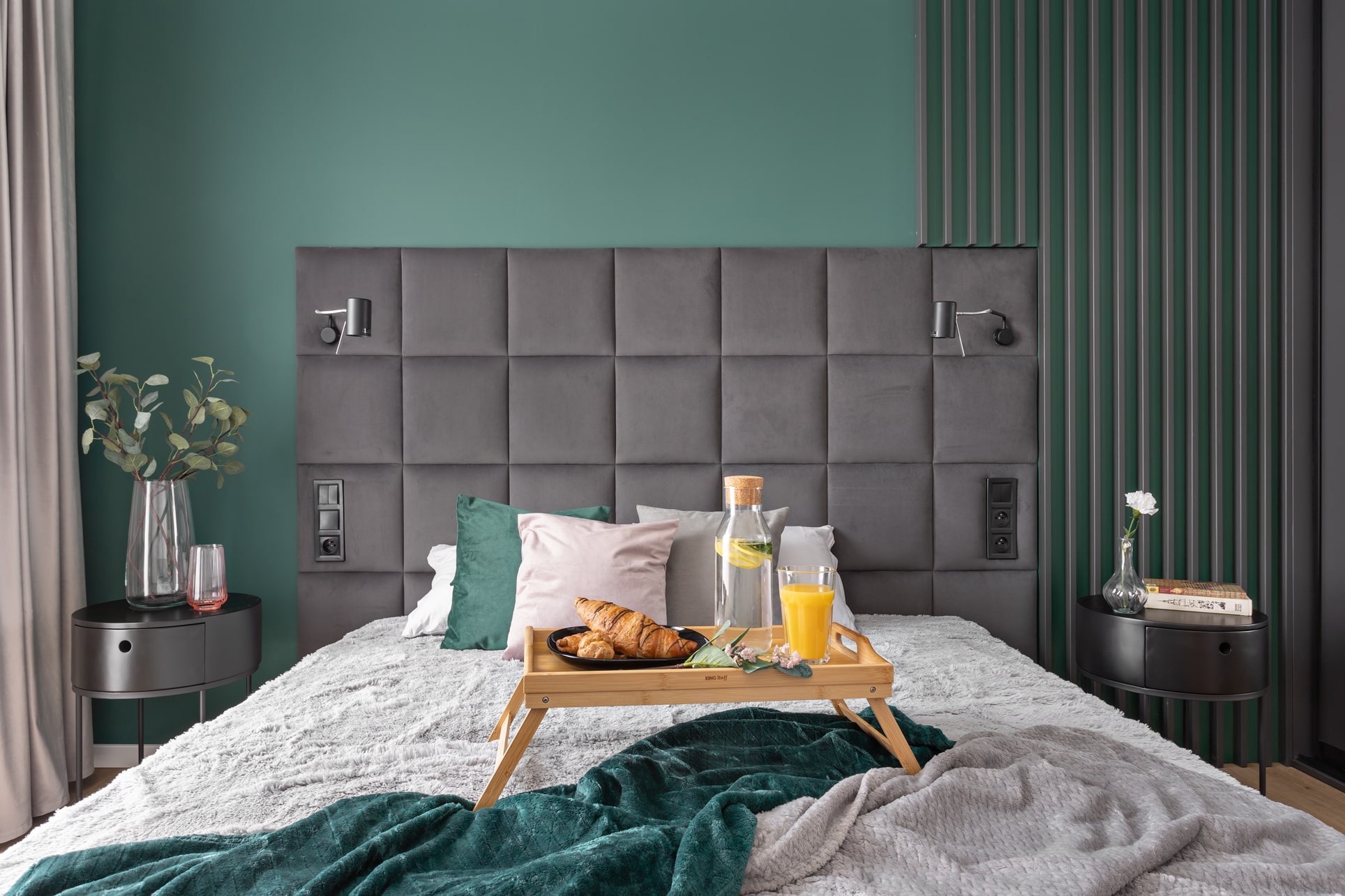 - Widoki ścian z kompletnym wyposażeniem, kolorystyką i doborem materiałów.